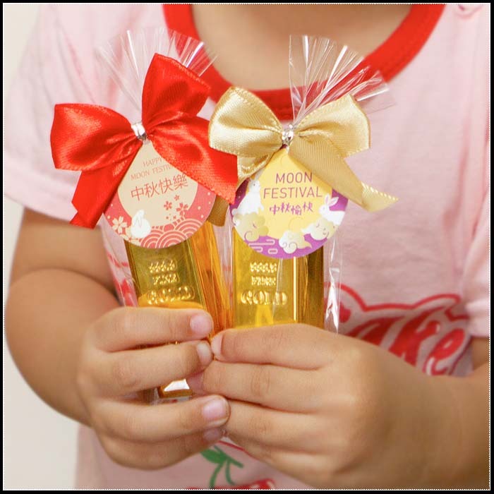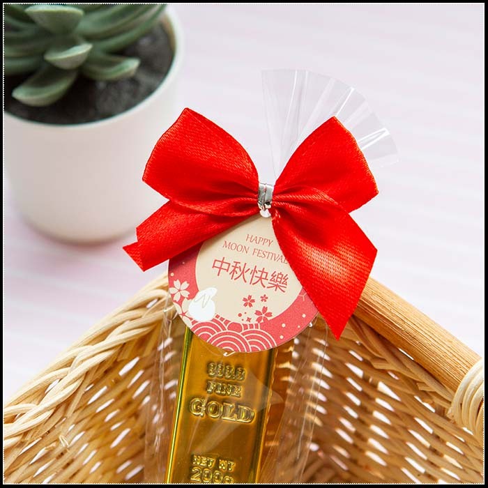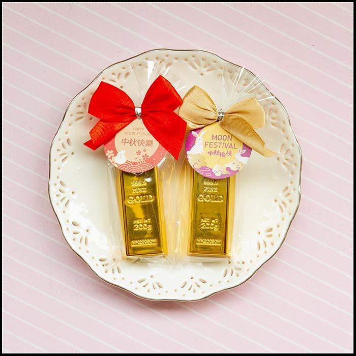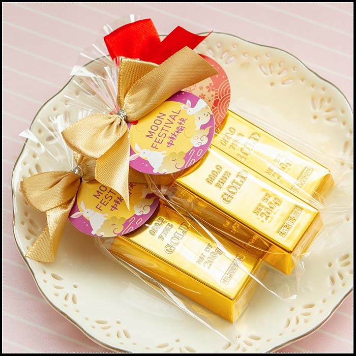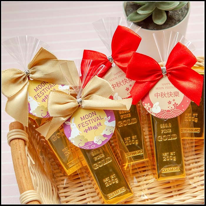 *特別為中秋設計的活動創意贈品『中秋節快樂』金塊磁鐵, 祝福所有朋友們能夠穩穩賺錢發大財! *最適合作為餐廳、民宿、 各行各業店家來店禮、打卡禮小贈品, 也適合公司企業、公關活動作為迎春送禮的禮贈品, 利用小小預算,即可為您形象加分! 促進消費,是功不可沒的廣告品喔! *我們提供了完美的包裝: 透明袋+「中秋」吊牌+蝴蝶結(如圖), 包裝完成做好保護才送到您手中喔! 吊牌共有2款可挑:紅底玉兔望月-中秋快樂(搭大紅色蝴蝶結)、 紫底月圓雲兔-中秋愉快(搭金色蝴蝶結) 量大優惠↓ 300份以上,每份特價35元 500份以上,每份特價34元 1000份以上,每份特價33元 (恕不與其他優惠活動同時使用)