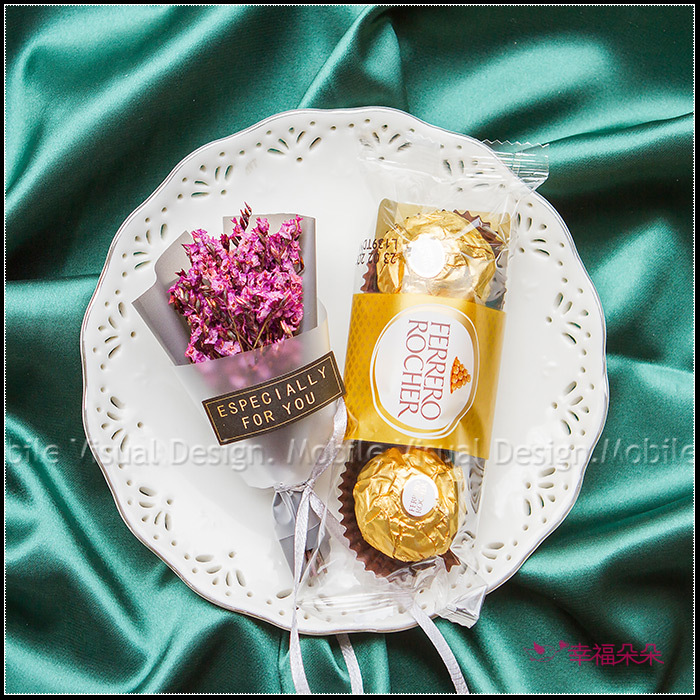 每盒禮物盒均有 金莎巧克力3顆入 + 迷你乾燥花束1束 作為節日送禮或拜訪客戶都絕對是超棒的禮物喔。