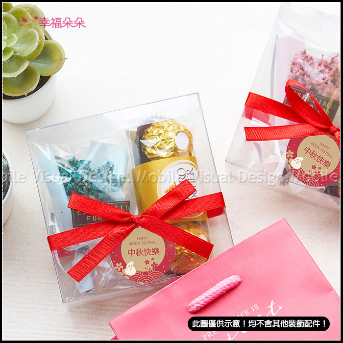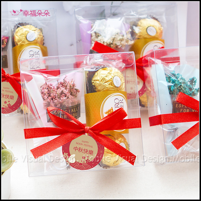 中秋節禮物贈品 金莎巧克力3顆入+迷你乾燥花束(透明方盒)-4色可選 (新品上市特價中)