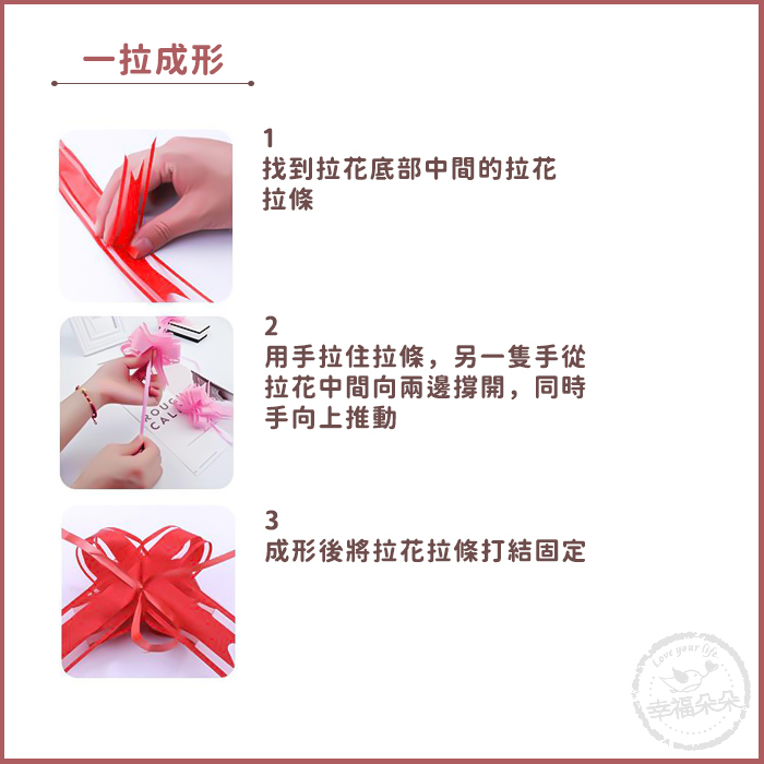 可裝飾結婚禮車、橱櫃把手、禮盒包裝... *平版售出,需自行DIY,只要從緞帶中間兩條細帶一拉, 再打結,就完美變身成一朵漂亮立體的車彩花囉~~ 是不是很簡單呢? 材質:塑膠 顏色:紅色 注意:本產品需自行DIY喔!輕輕一拉即成型,很簡單! ※商品因拍攝環境或不同顯示器等難免有色差,請以實物為準。 ※商品尺寸/重量為手工測量,難免有些微誤差,敬請留意喔。 |