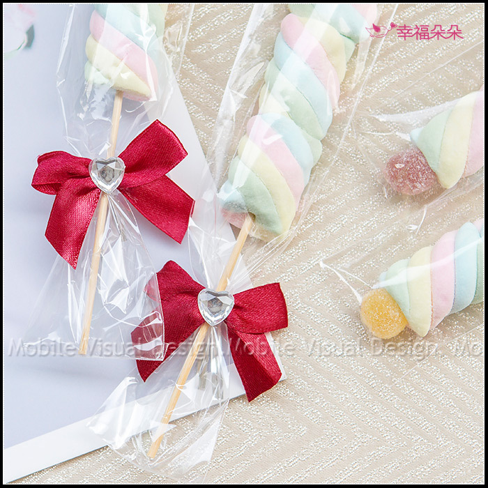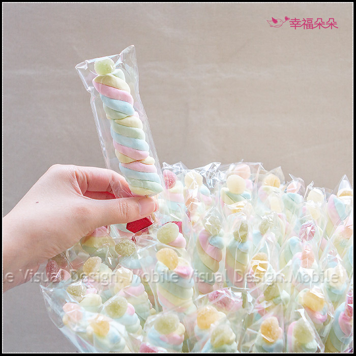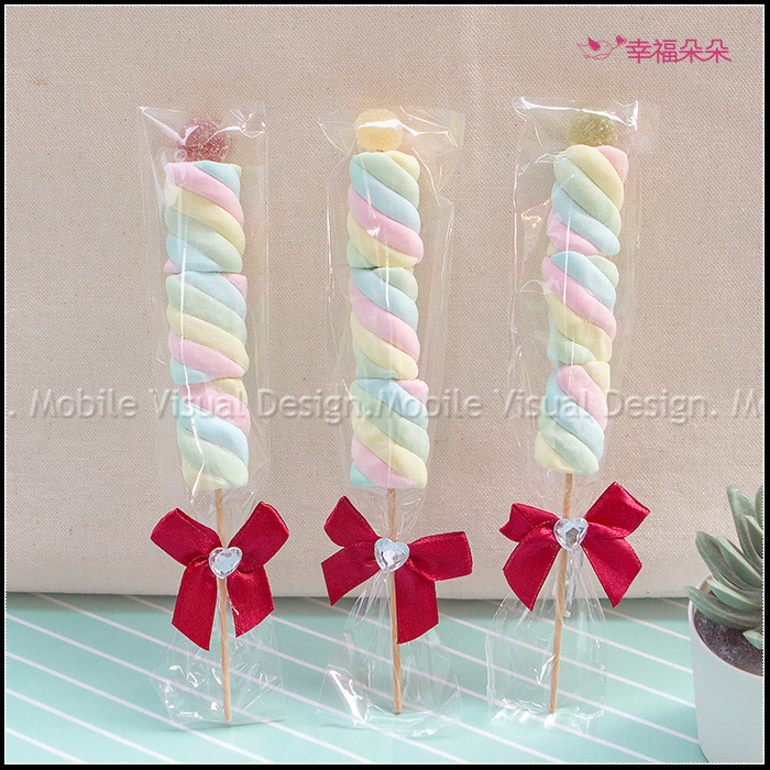 *軟Q香甜的圓形水果軟糖+QQ綿綿的麻花棉花糖串,大人小孩都愛! *棉花糖串是近期流行的二次進場送客禮,亦可當做送客時的喜糖喔~ *棉花糖講究衛生安全,全程採用乳膠手套+口罩手工製作, 並使用熱封封口機連同竹籤整支封起, 竹籤更是台灣竹山的桂竹生產~外銷用優良品質喔。