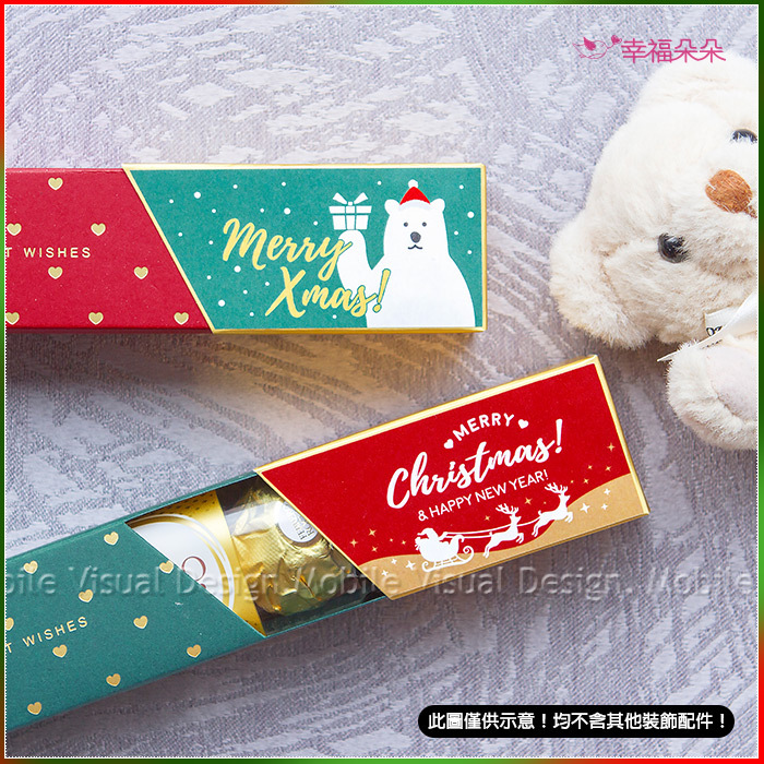 共2款可挑: 閃耀耶誕迎新年款(紅色貼紙+綠色盒子) 北極熊送禮物款(綠色貼紙+紅色盒子)