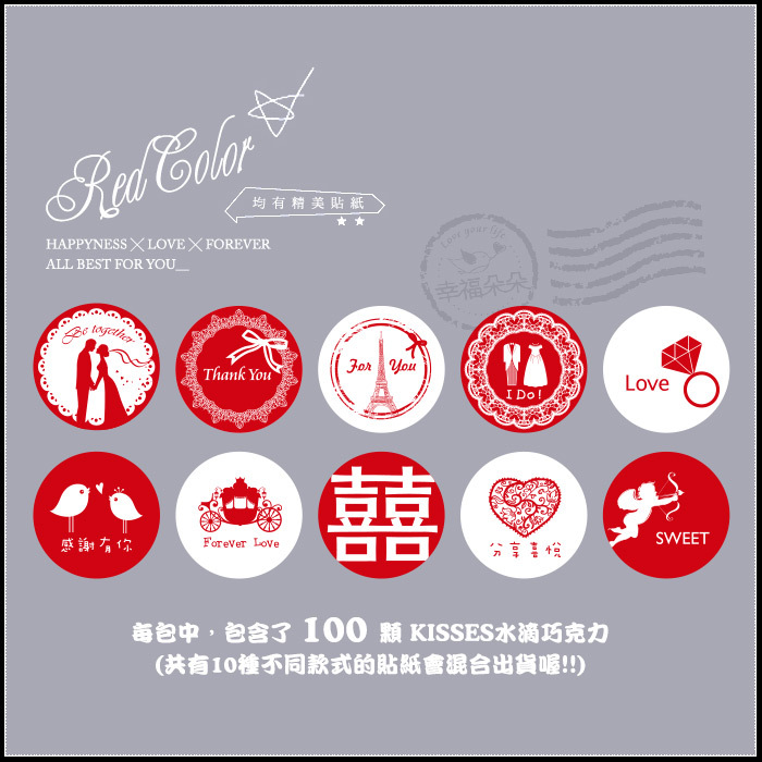 Red紅色婚禮主題─KISSES水滴巧克力(每包100顆) (新品上市特價中)