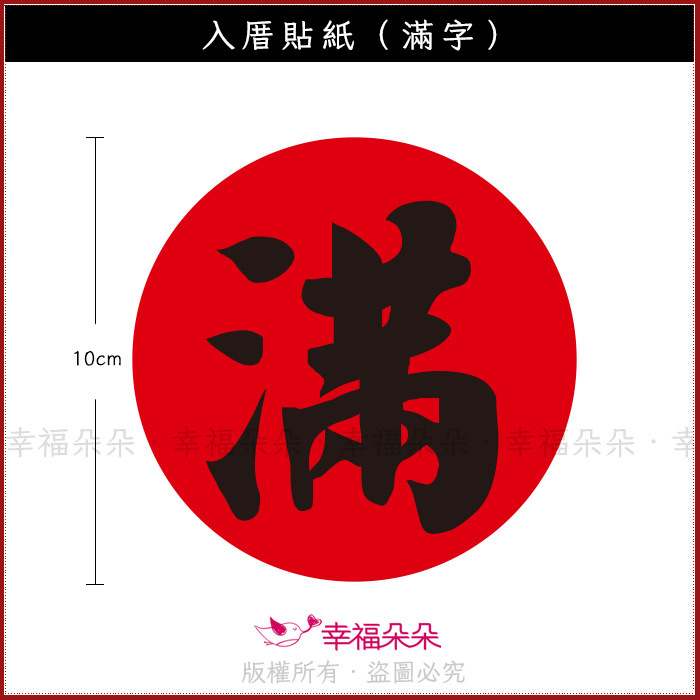 10cm圓 入厝貼紙 滿 (1小圓8元) 新居入宅 開門七寶貼紙 拜拜供品 結婚 十二禮貼紙 春聯貼紙 滿 (新品上市特價中) |