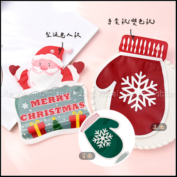 其中禮物款、手套款、鈴鐺款此3款皆為一袋雙色~讓您的裝飾更加豐富😁 *請留意:此賣場僅販售糖果夾鏈袋均不含內容物及任何配件! ※一律平舖寄出,需自行diy組裝相當容易