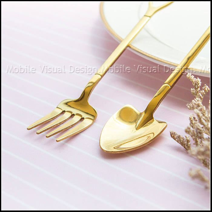 鏟子叉子湯匙本身採用410不銹鋼材質製造,電鍍噴漆工藝、色澤均勻,新穎別緻更有質感!