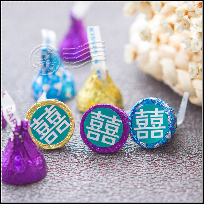此糖果包均內有100顆巧克力,每顆巧克力底部均貼有囍字貼紙, 每一顆都讓親友有驚喜感,讓他們感受到你們的甜蜜吧! ※賣場也有販售單顆巧克力喔~每顆特價5元!