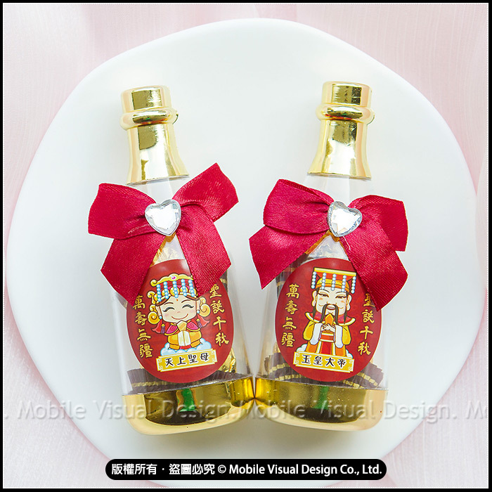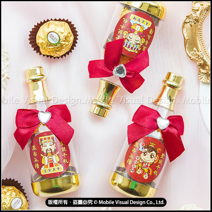 Q版神明祝壽 香檳糖果瓶(金莎2顆入) 滿百份免費印名字 (新品上市特價中)