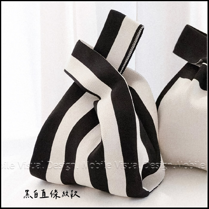韓版Ins 黑白直條紋針織包 針織手提包 便當手提袋 (新品上市特價中)