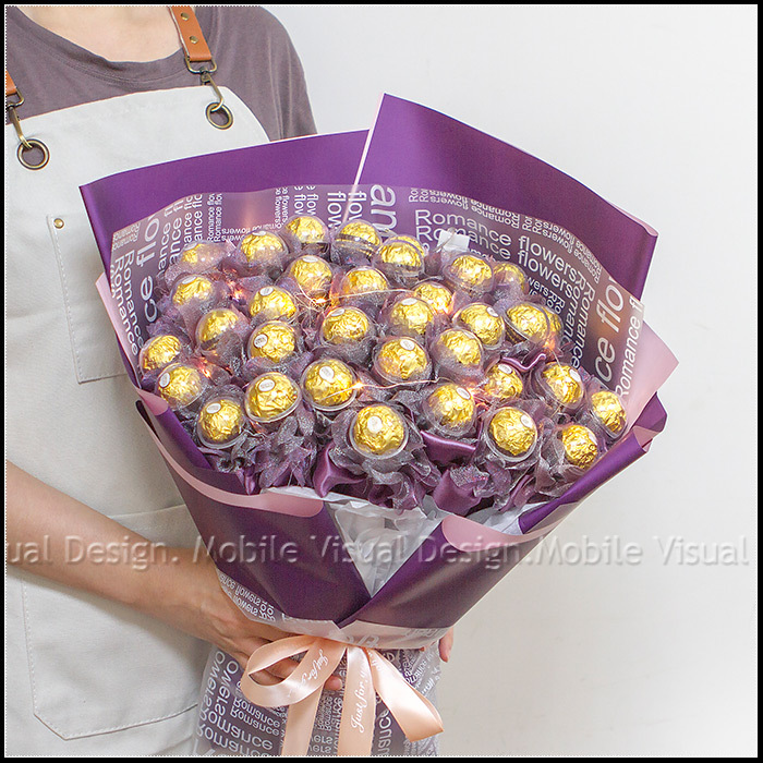 屬於你 豪華版 36顆金莎花束 優雅深紫 (附燈串.多色可挑) (新品上市特價中)