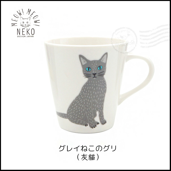日本進口 - 日本小倉陶器 MEOW! MEOW! 文青手繪貓咪馬克杯 290ml (灰貓) (新品上市特價中)