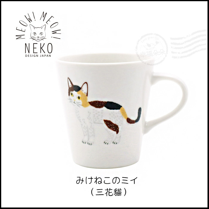 日本進口 - 日本小倉陶器 MEOW! MEOW! 文青手繪貓咪馬克杯 290ml (三花貓) (新品上市特價中)