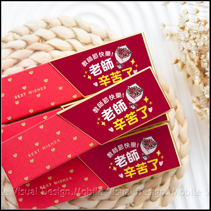 每個包裝盒內均有 金莎巧克力3顆入 ,外盒並貼有幸福朵朵獨家設計貼紙,非常可愛活潑!作為贈送老師的感謝禮絕對是超棒的小禮物喔🧡 🧡100盒以下是公版貼紙(無客製文字) 🧡100盒以上可免費客製文字於貼紙上