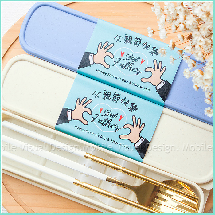 共有4種顏色可挑:白金、綠金、藍金、黑金 每份餐具組皆含有葡萄牙叉子1支、湯匙1支、筷子1雙 並貼有幸福朵朵獨家設計電繪愛心手勢插圖腰封🩷 super勾椎🫠 🧡100份以下是公版腰封(沒印名字) 🧡100份以上腰封可以免費印製文字(文字愈多字愈小喔!!)