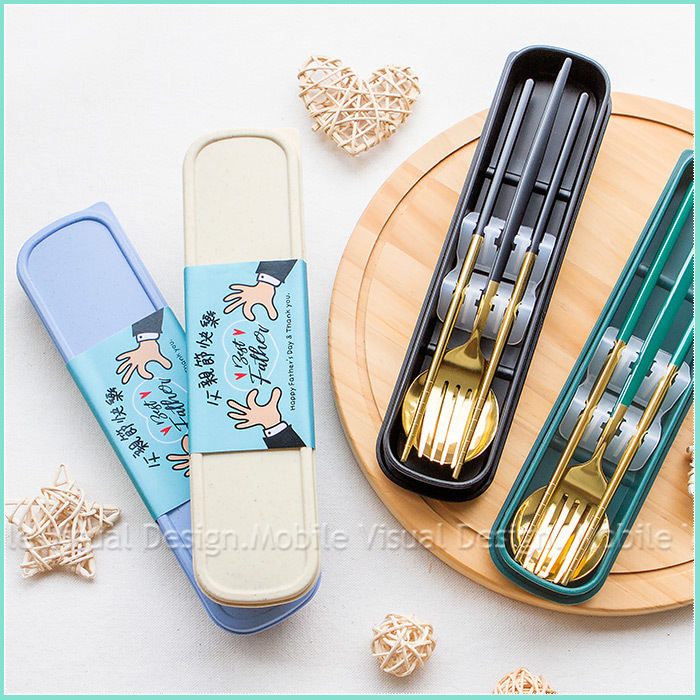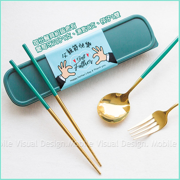 父親節禮物贈品 精緻不鏽鋼環保餐具3件組 - 葡萄牙筷子+湯匙+叉子組 (4色可挑) (滿百份免費印名字)(新品上市特價中)