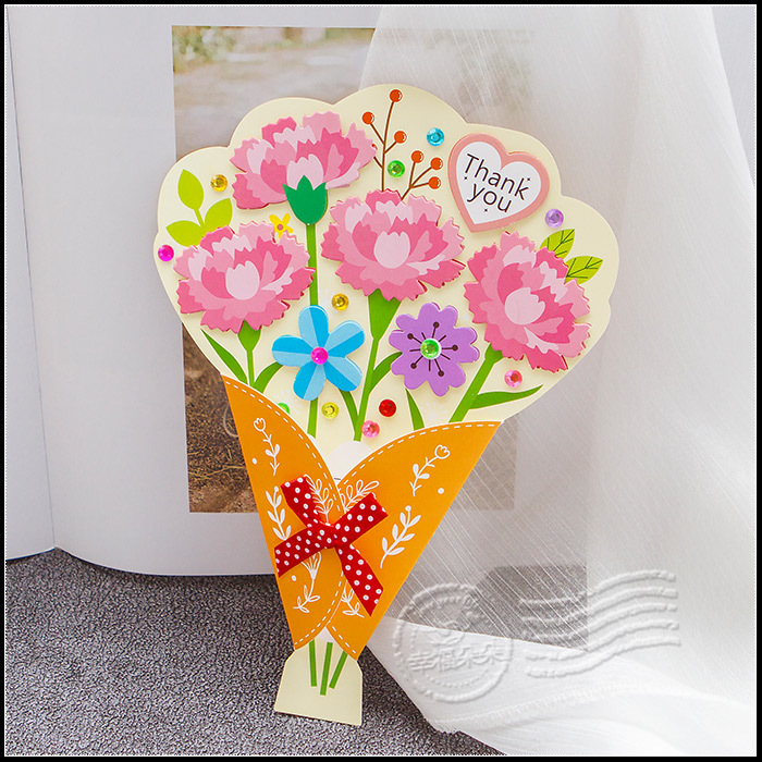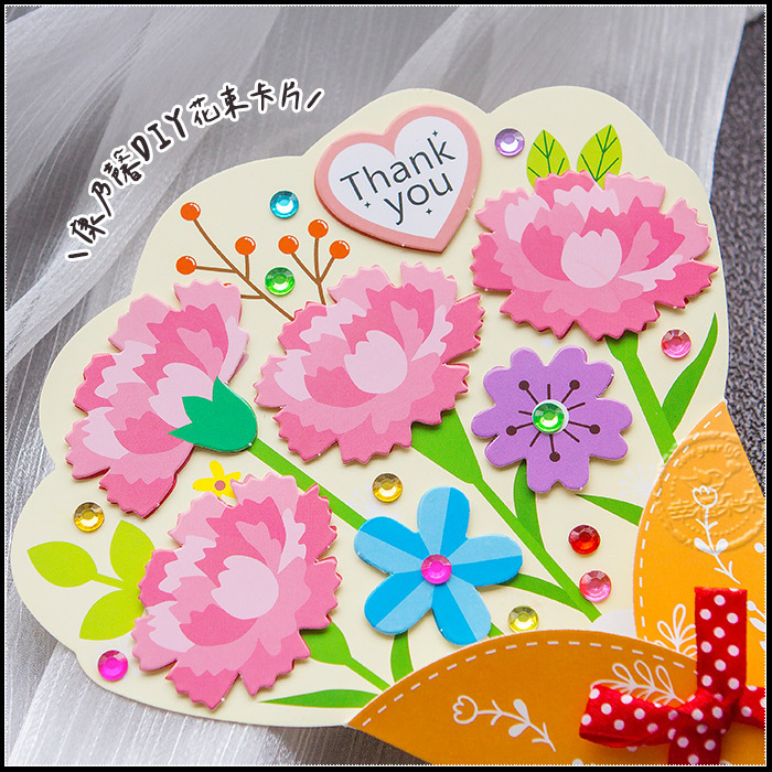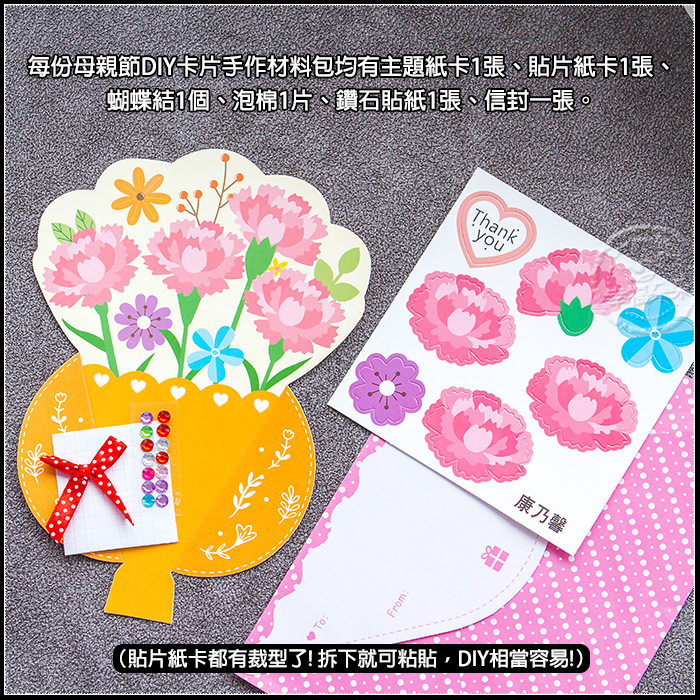 母親節 DIY手作材料包 康乃馨花束卡片 小朋友手工賀卡 附信封 (新品上市特價中)