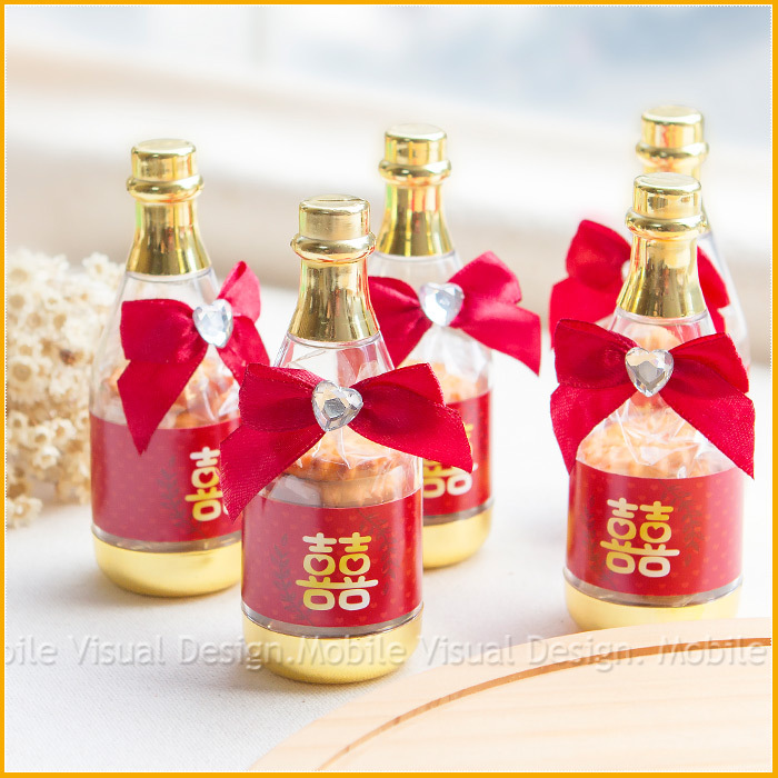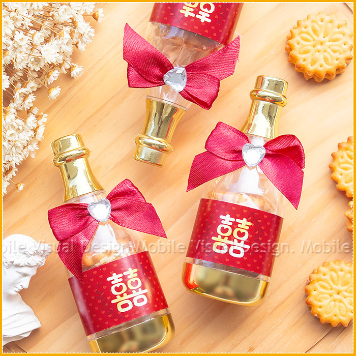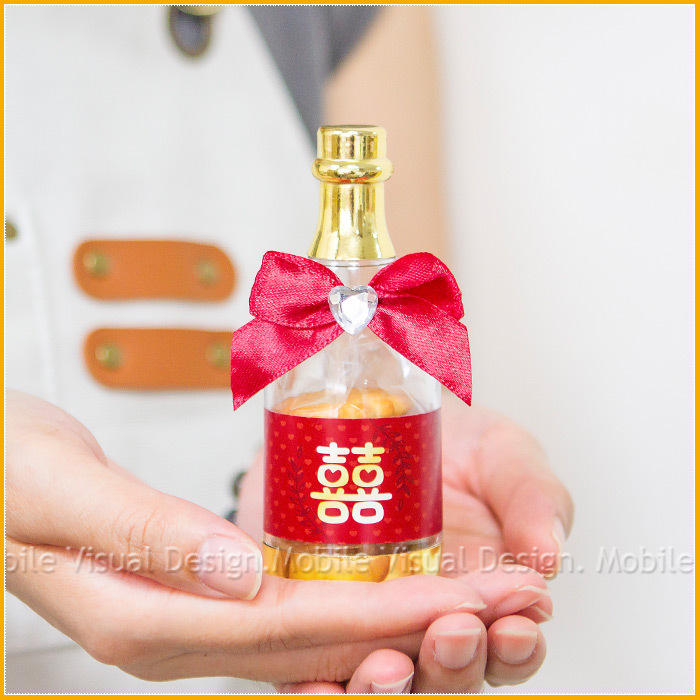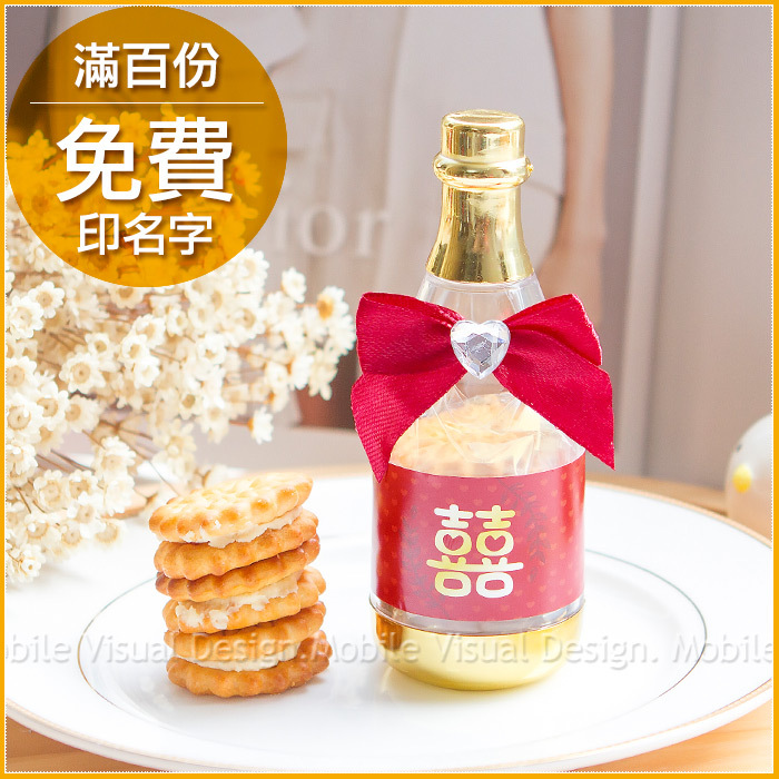 婚禮小物 囍字香檳瓶 (小檸檬夾心餅乾 3個入) -滿百份免費印名字 (新品上市特價中)