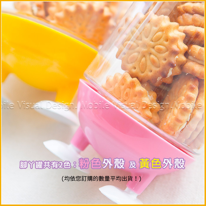 腳丫罐共有2色:粉色外殼及黃色外殼 ※腳ㄚ罐外殼顏色均依您訂購的數量平均出貨!若您只訂1罐者均以粉色外殼出貨!