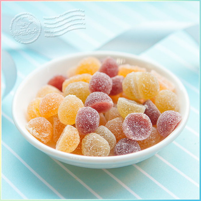 麥芽糖漿、糖、明膠(豬來源)、馬鈴薯澱粉、玉米澱粉(非基因改造) 、調味劑(無水檸檬酸、DL蘋果酸、檸檬酸鈉) 、天然食用色(蘿蔔紅、黃梔子、梔子藍) 、香料 .添加天然色素不含人工色素