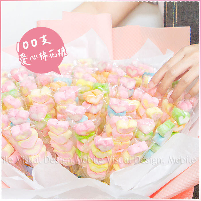 浪漫粉愛你 愛心棉花糖100支入 (新品上市特價中)