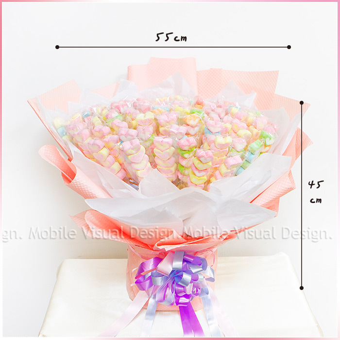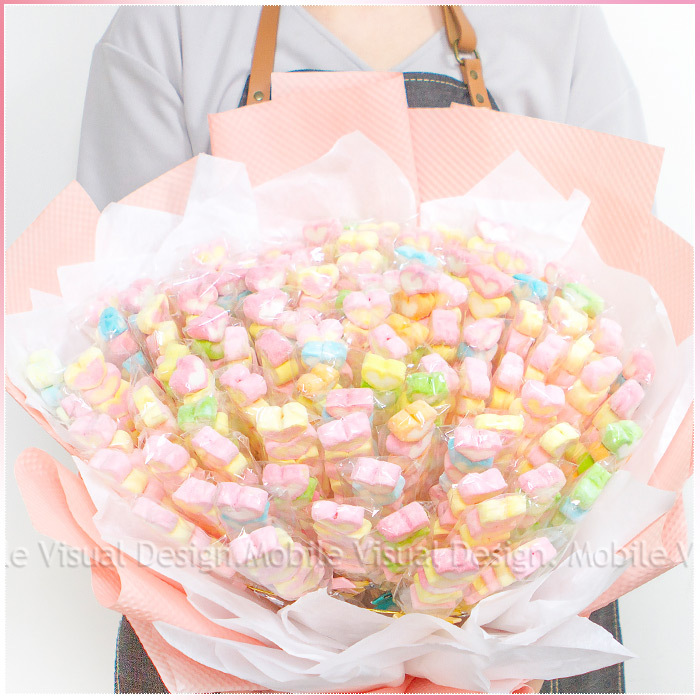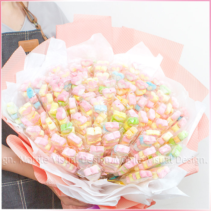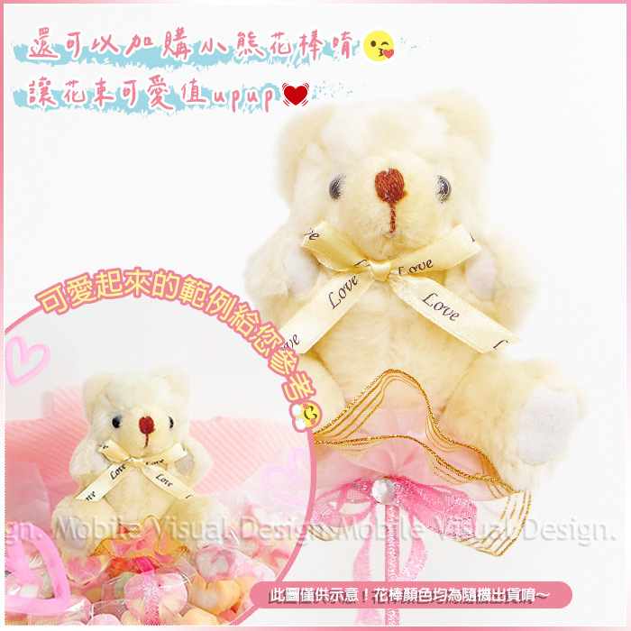 ✿✿✿ 每束均有 100支愛心棉花糖棒 ! 也可加購小熊花棒讓你的花束可愛值更加upup💖💖💖 (若遇紙材缺貨或斷貨,將以類同色他款替代)