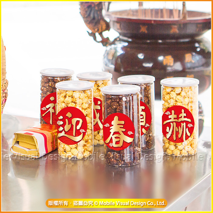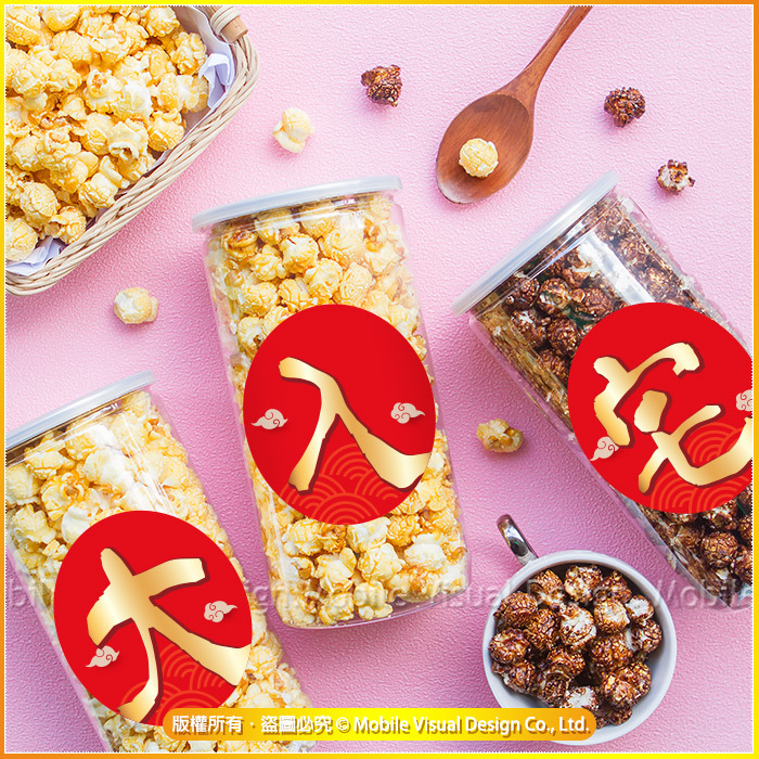 拜拜祈福 四字吉祥話 大罐爆米花罐 (1組4罐-口味各半) (新品上市特價中)