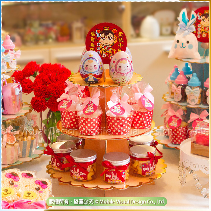 此組合內含: 雙面彩色神明圓卡X1張(可選神明款式,需自粘) 粉色花邊三層蛋糕架X1個(需自組) 生日分享禮 小熊軟糖2包入彩蛋X4顆 生日吊牌貓掌棉花糖杯X12個 生日快樂飛機餅乾罐X8罐