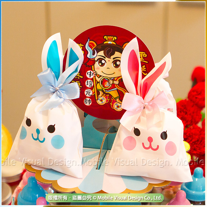 蛋糕塔:第一層直徑圓約18cm、第二層直徑圓約24cm、第三層直徑圓約30cm、總高約33cm (每層層高約11cm左右) 神明圓卡:10cm圓 微笑兔子袋:約寬10cm×高18.2cm,去除耳朵高度可裝部份為高9.5cm (重約28g) 奶瓶糖果:約4cm圓 x 高8.3cm (透明瓶身高約5cm) 棉花糖杯:每顆棉花糖約2.5x高2cm ; 含包裝約 6 x 11.5cm (重約24g) 內容物手工測量,多少會有些微誤差喔! 不介意才下訂