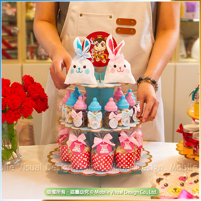 此組合內含: 雙面彩色神明圓卡X1張(可選神明款式,需自粘) 條紋藍三層蛋糕架X1個(需自組) 生日分享禮 微笑兔子 (小饅頭餅乾)X4個 生日分享禮 小奶瓶糖果(米果巧克力)X6瓶 生日分享禮 小奶瓶糖果(小饅頭餅乾)X6瓶 生日分享禮 生日快樂 繽紛愛心棉花糖杯 X 10個