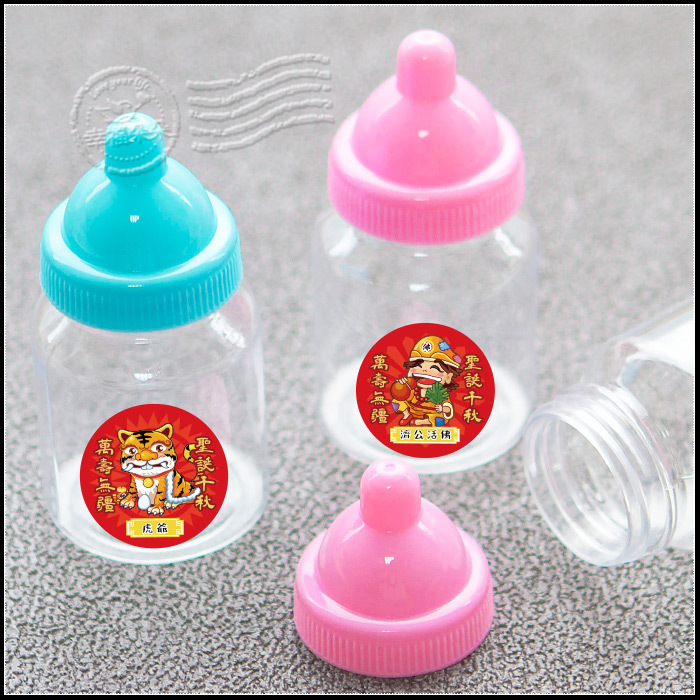 *奶瓶糖果共有2色:粉色、藍色 *這是空殼不含糖果喔!為單1支價格 ●神明貼紙有多款可依需求挑選(基本10份起訂喔): ㊗Q版神明系列共55款可挑 ㊗叩謝神明系列共4款可挑