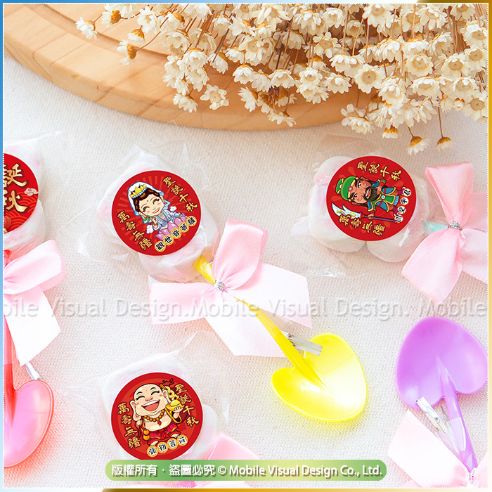 超可愛貓爪造型棉花糖,口感綿綿的,吃起來甜在心頭😋 可做休閒零嘴或加入冰品、巧克力噴泉等烹飪都非常好吃喔🍨 不管是當點心、小零嘴都很適合,快來收服孩子們的胃吧🧡 鏟子諧音「產子」,象徵百年好合、早生貴子, 是很特殊又吉祥的小禮呦! 多色鏟子皆採隨機出貨! 恕不挑色喔! ●神明貼紙有多款可依需求挑選: ㊗Q版神明系列共55款可挑 ㊗叩謝神明系列共4款可挑 ㊗神明祝壽系列共4款可挑