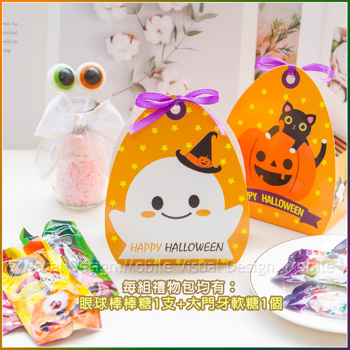 成品現貨! 萬聖節糖果小禮物盒 (內含:眼球棒棒糖+大門牙軟糖) (新品上市特價中)