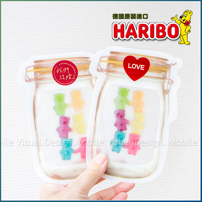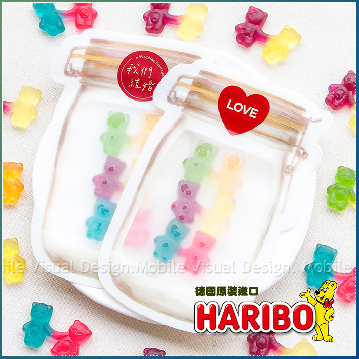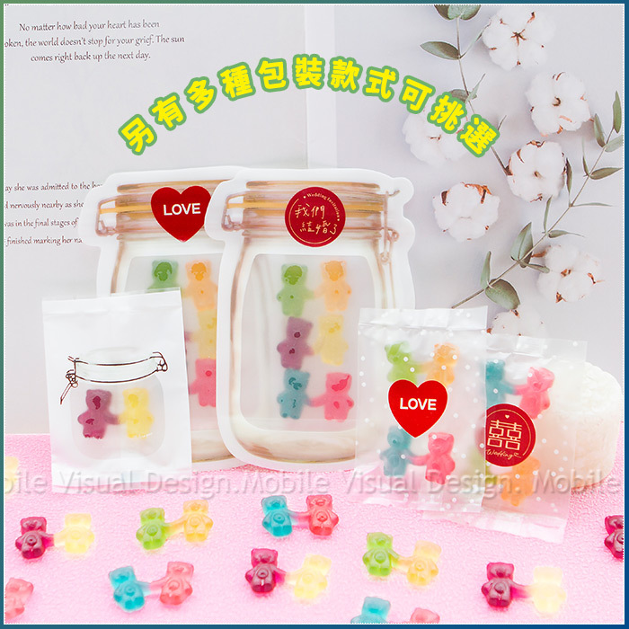 手牽手小熊軟糖 3入 梅森瓶密封袋裝 我們結婚了 LOVE (口味3種各1 貼紙2款可選)