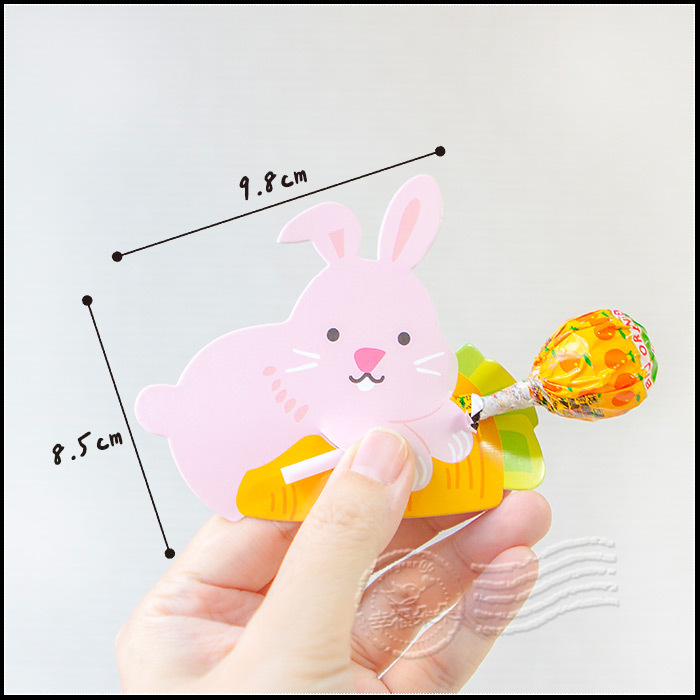 單支棒棒糖約直徑3cm圓x高8.7cm 紙卡尺寸約寬6.5-8cmx高11.8-13.5cm 內容物手工測量,多少會有些微誤差喔! 不介意才下訂