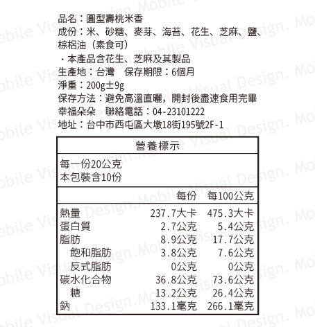 |SGS安心原料.嚴格把關| 🧡圓型的米香,象徵「圓滿如意」一口咬下去香氣四溢,鹹甜香融合一體,象徵好福氣;封面印有壽桃圖案+闔家平安字樣,於祝壽節慶上使用最適合不過了!彷若帶著對神明與祖先的虔誠,為心繫的家人祈求平安順遂😉 🧡使用台灣最優質的米製作,帶有花生、海苔和芝蔴香,養生又可口,讓妳吃了還想再吃喔!堅持最原始的美味,絕不加防腐劑!請安心食用!! 🧡本品為新鮮手工製作,收件後請以常溫陰涼處保存,建議開封後盡快食用完畢;保存期限至少都有3個月以上,請放心。