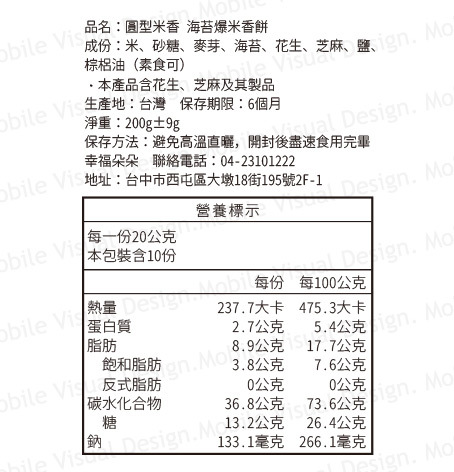 |SGS安心原料.嚴格把關| 🧡圓型的米香,象徵「圓滿如意」一口咬下去香氣四溢,鹹甜香融合一體,象徵好福氣😉 🧡使用台灣最優質的米製作,帶有花生、海苔和芝蔴香,養生又可口,讓妳吃了還想再吃喔!堅持最原始的美味,絕不加防腐劑!請安心食用!! 🧡本品為新鮮手工製作,收件後請以常溫陰涼處保存,建議開封後盡快食用完畢;保存期限至少都有3個月以上,請放心。