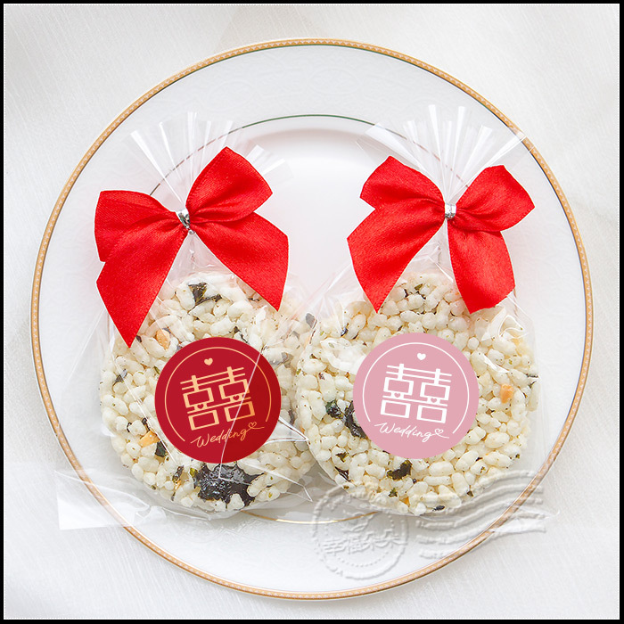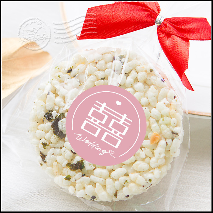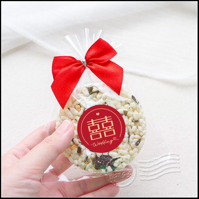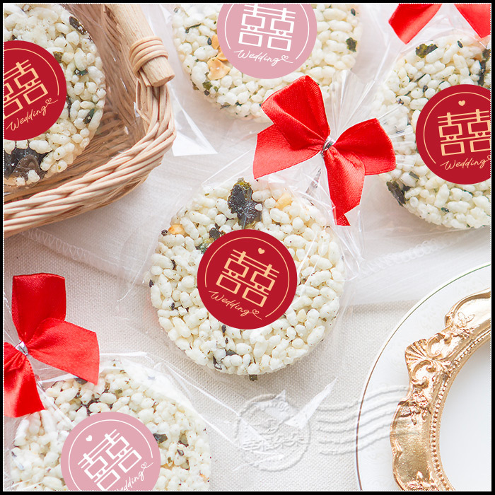 婚禮小物 設計風囍字 精巧單包裝 圓型米香 海苔爆米香餅 素食可 (新品上市特價中)