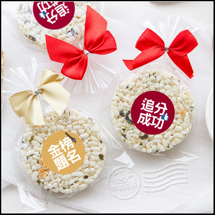 考試祝福 精巧單包裝 圓型米香 海苔爆米香餅 素食可 追分成功 金榜題名 貼紙可挑 (新品上市特價中)