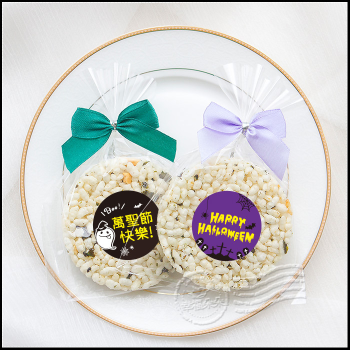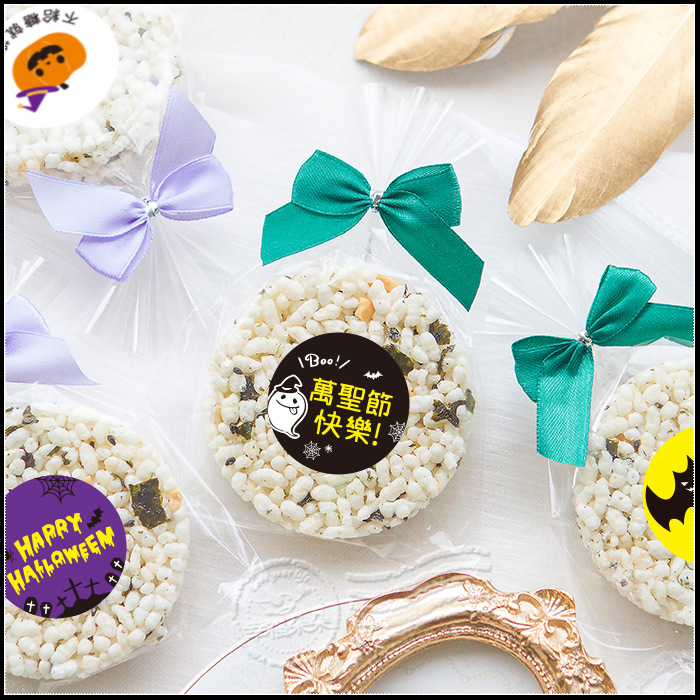 萬聖節禮物贈品 精巧單包裝 圓型米香 海苔爆米香餅 素食可 萬聖節快樂 (新品上市特價中)