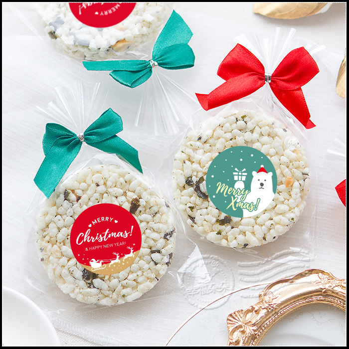聖誕節禮物贈品 精巧單包裝 圓型米香 海苔爆米香餅 素食可 聖延節快樂 (新品上市特價中)