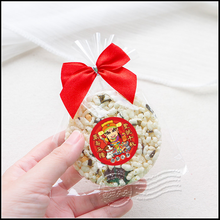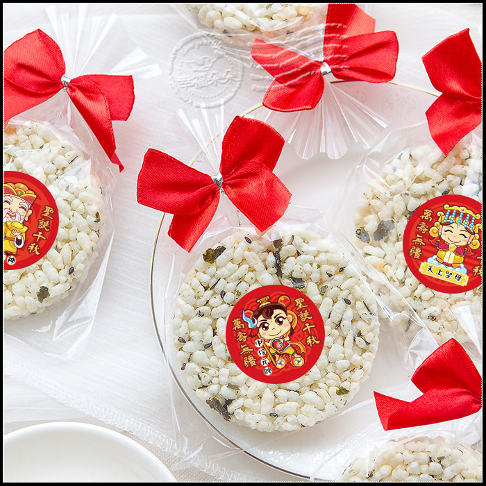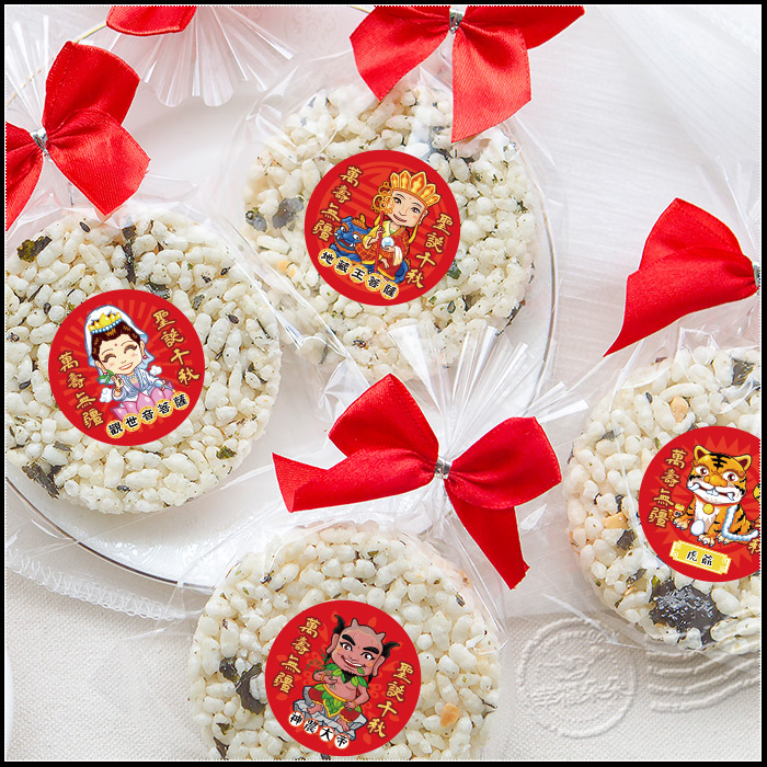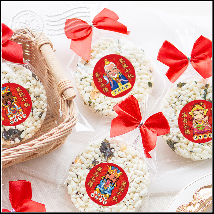 Q版神明祝壽 精巧單包裝 圓型米香 海苔爆米香餅 素食可 (新品上市特價中)