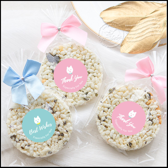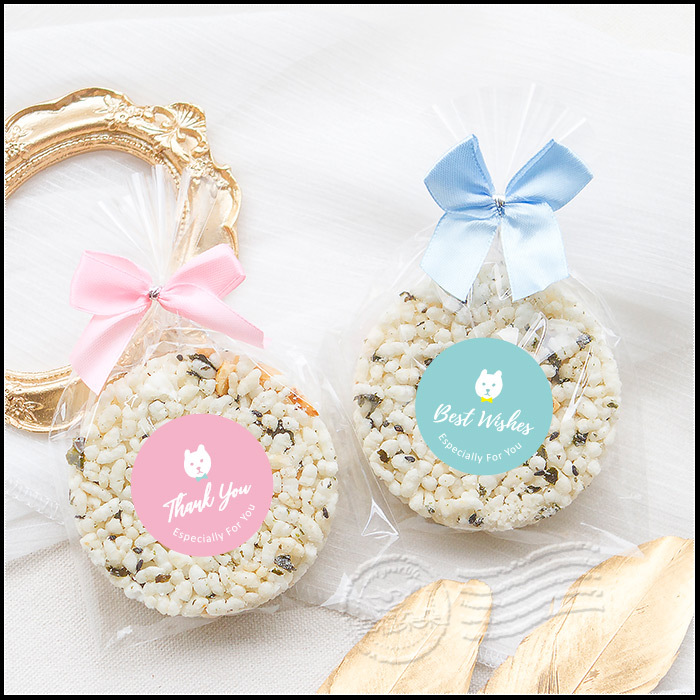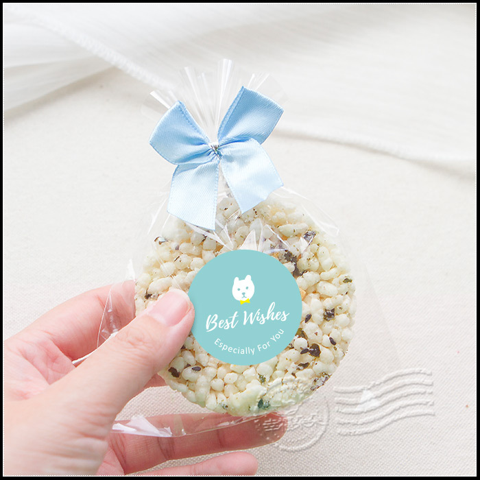 圓型的米香,象徵「圓滿如意」一口咬下去香氣四溢,鹹甜香融合一體,象徵好福氣😉 共2款貼紙可挑:粉底狗狗Thank You貼紙、藍底狗狗Best Wishes貼紙 |SGS安心原料.嚴格把關| ღ 使用台灣最優質的米製作,帶有花生、芝蔴香,養生又可口,讓你吃了再吃!堅持最原始的美味,絕不加防腐劑!請安心食用!! ღ 本品為新鮮手工製作,收件後請以常溫陰涼處保存,建議開封後盡快食用完畢; 最佳賞味期2~3週內,冷凍保存1個月,因台灣天氣較為潮濕,如想保存時間較為長久,可用密封罐作保存,便於您慢慢享用它的美味。 接單後排單交貨(趕件者請先詢問時間) 餅乾會儘量保護,但難免在運送途中偶有碰撞小碎屑,不介意再下訂喔。