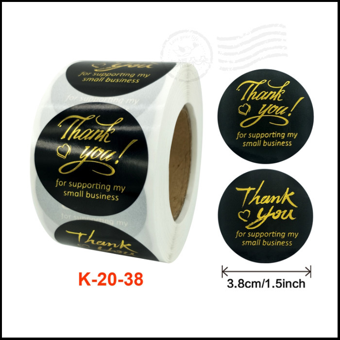 黑底燙金 Thank you 感謝支持小生意 圓形貼紙 3.8cm (基本10枚起訂) K-20-38