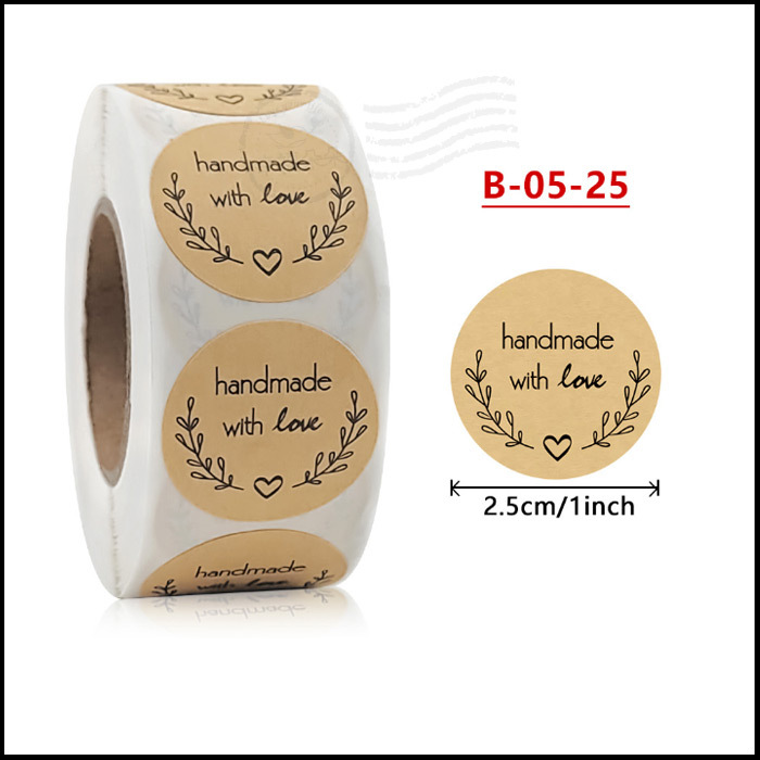 牛皮 ꕤ handmade with love 樹葉邊框 ꕤ 2.5cm 圓形貼紙 (基本10枚起訂) B-05-25