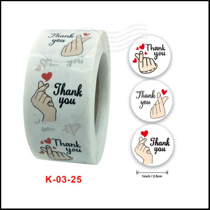 手比愛心 ♡ Thank you ♡ 圓形貼紙 2.5cm (基本10枚起訂) K-03-25 (混合款式 隨機出貨)