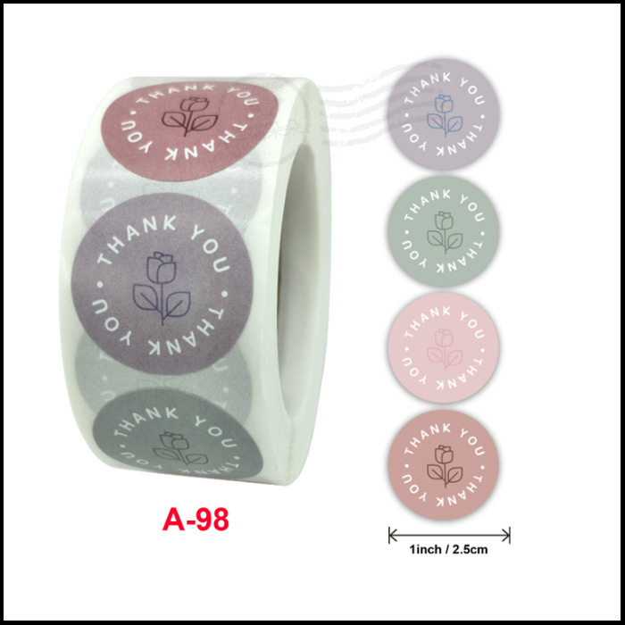 莫蘭迪色 花花系列 ✿ THANK YOU ✿ 圓形貼紙 2.5cm (1捲約500枚-混合4色貼紙) A-98-25
