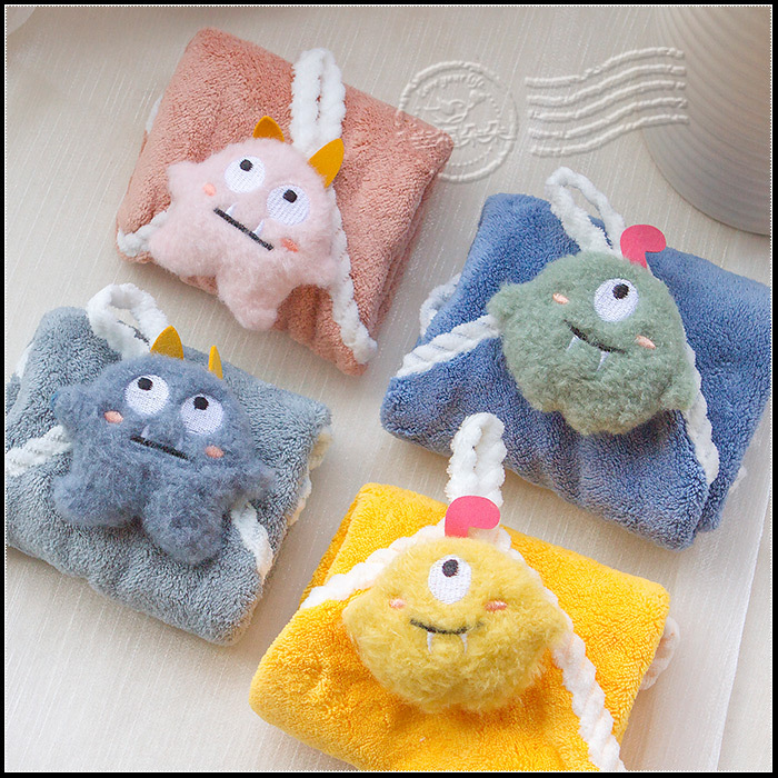 🧡🧡🧡 有了這款擦手巾,解決您洗完手溼答答的困擾喔•̀.̫•́✧✧✧ 不用再浪費衛生紙~也不用再往身上衣服擦! 安全衛生٩(♡ε♡ )۶ 共有4款造型:灰色小怪獸、黃色小怪獸、藍色小怪獸、粉色小怪獸