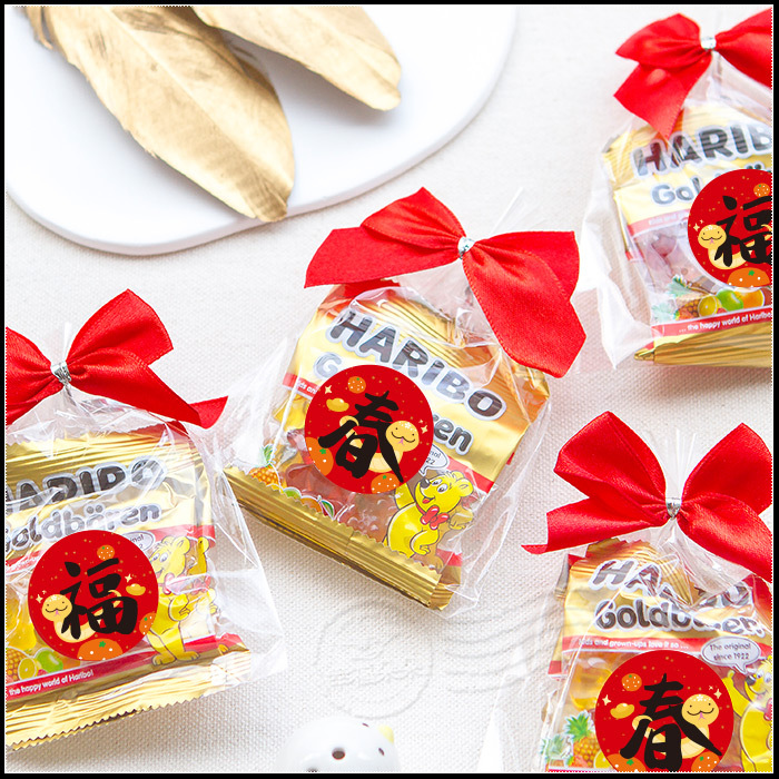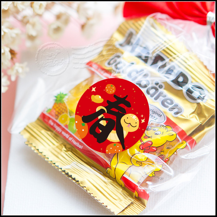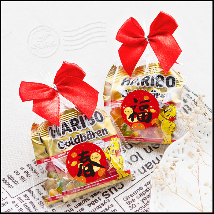 哈瑞寶金熊軟糖(GOLDBÄREN小熊軟糖)幾乎可以說是德國最經典零食代表,更是觀光客們必買的伴手禮🥰 不論在台灣或世界各地也是相當受歡迎的糖果喔!有草莓、檸檬、覆盆子等混多種水果口味,吃起來QQ好可口~~🤤 送給最親愛的朋友!真的剛剛好棒棒der 每份均有 德國小熊軟糖2小包 並貼上幸福朵朵獨家設計3cm蛇年大「橘」大利貼紙! 非常俏皮可愛喔🧡 作為禮物送親友或拜訪客戶都絕對是超棒的禮物喔。 貼紙共有2款可挑:春字款、福字款