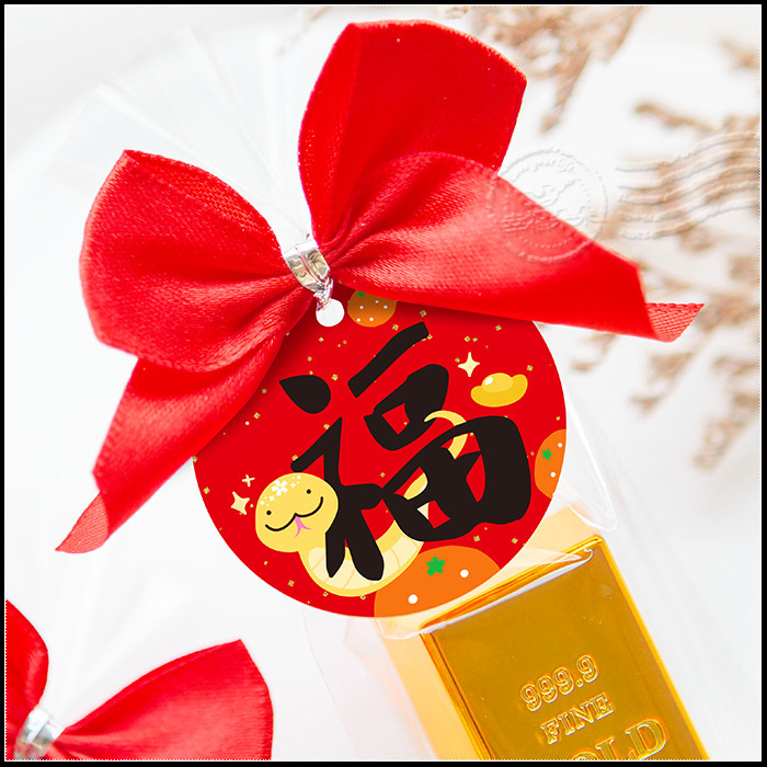 每個金塊磁鐵外包裝都繫有幸福朵朵獨家設計蛇年大「橘」大利吊牌,非常俏皮可愛喔🧡 更是年節派對、拜訪客戶的最最首選👍