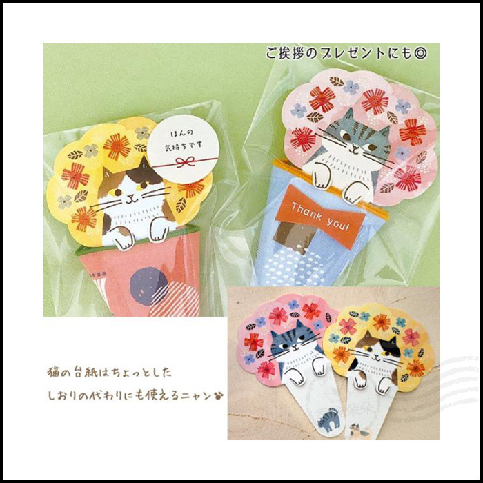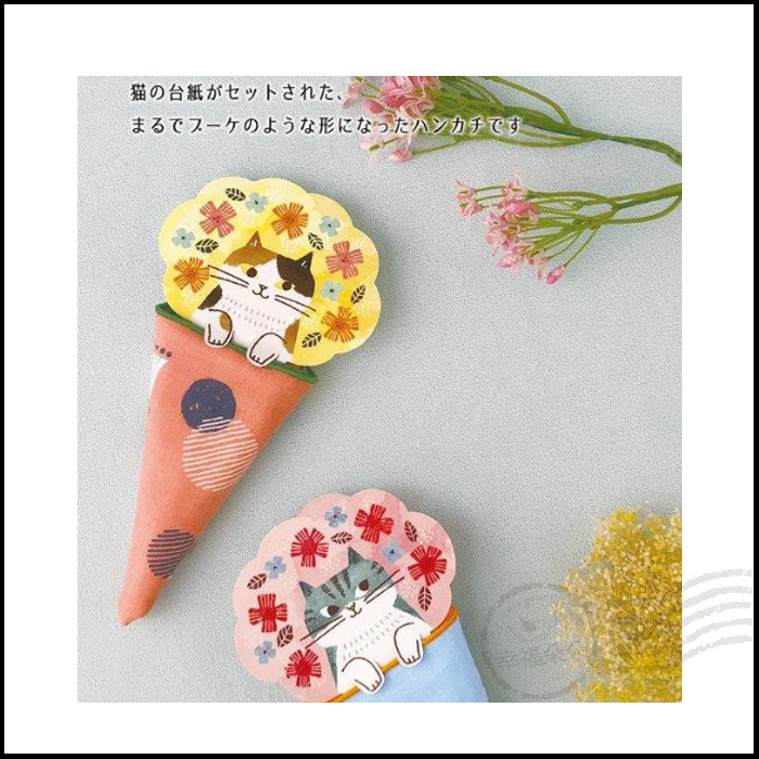 日本進口 DECOLE現貨正版 貓咪圖案 花束造型手帕卡片 紅色 藍色 純棉 手巾 小毛巾 感謝 禮物【AH-62471】【AH-62472】(新品上市特價中)